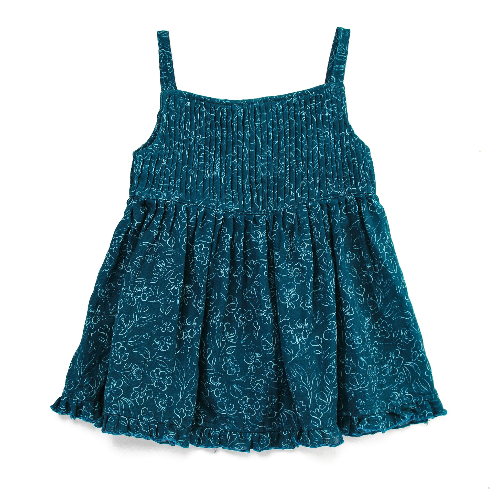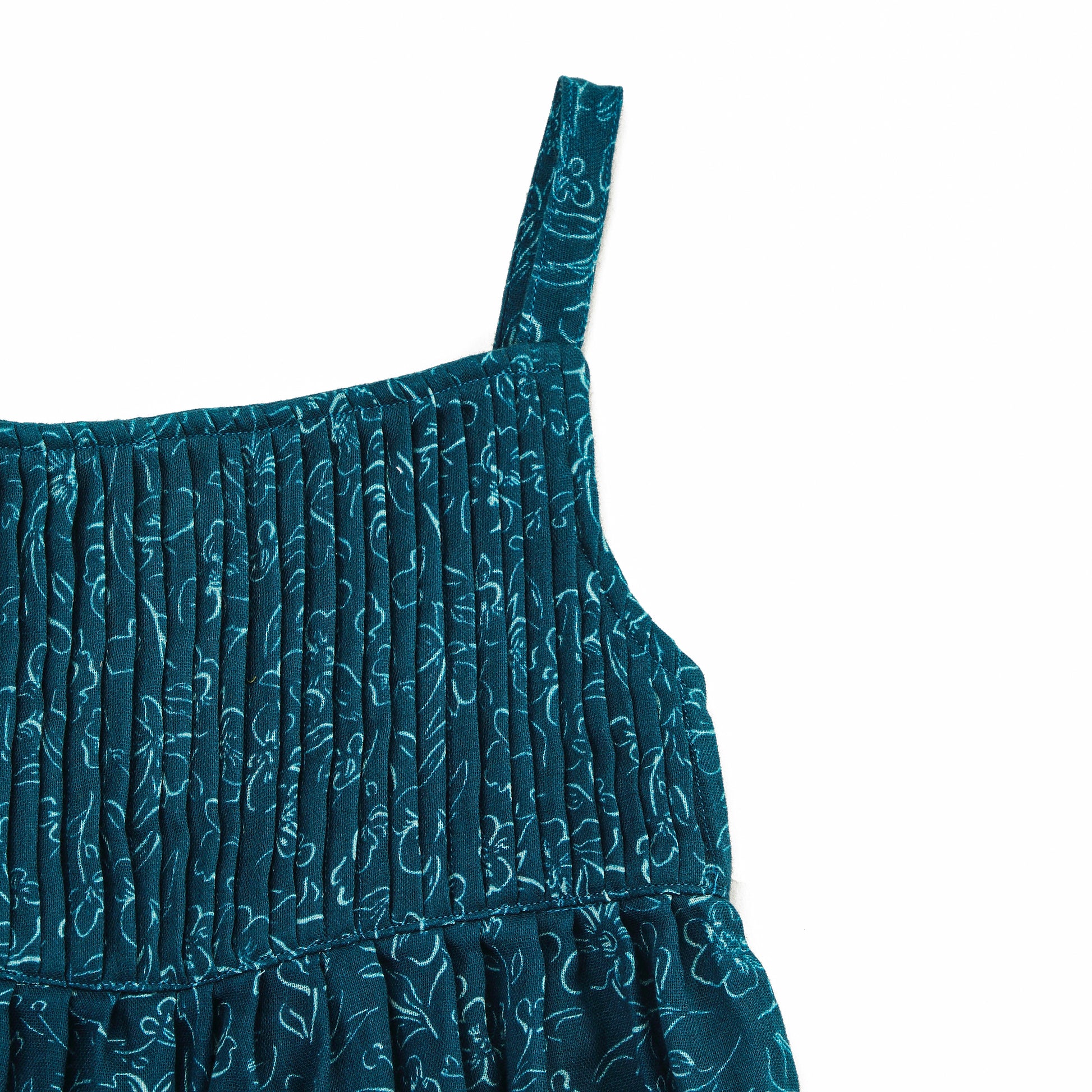 The Koala Aqua Blue Sundress, crafted from 100% organic cotton for a soft and breathable feel. This A-line dress features a delicate smocked bodice that ensures a perfect fit, while the gathered skirt adds playful volume. The intricate floral pattern throughout brings a fresh, summery charm, making it perfect for sunny outings or casual gatherings.