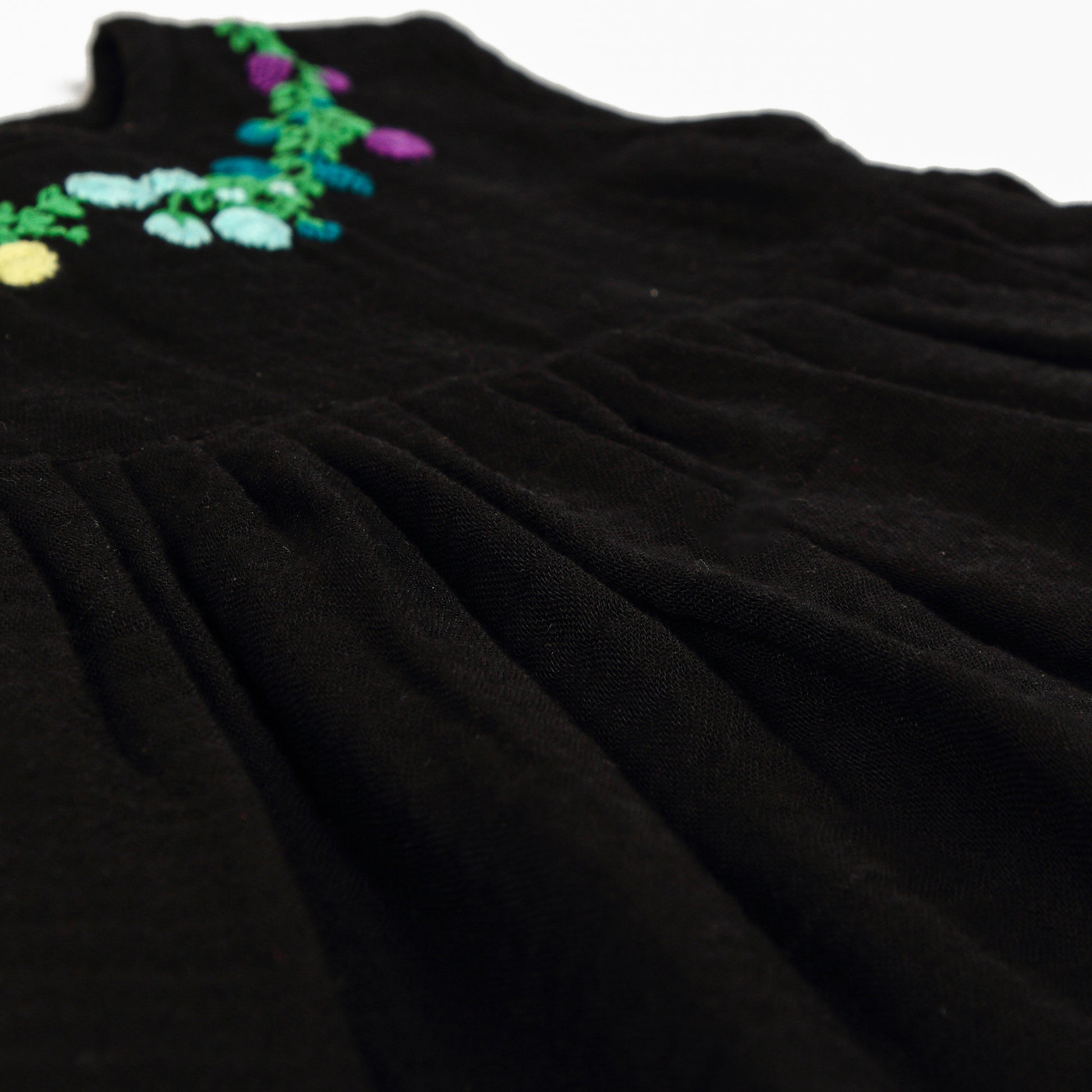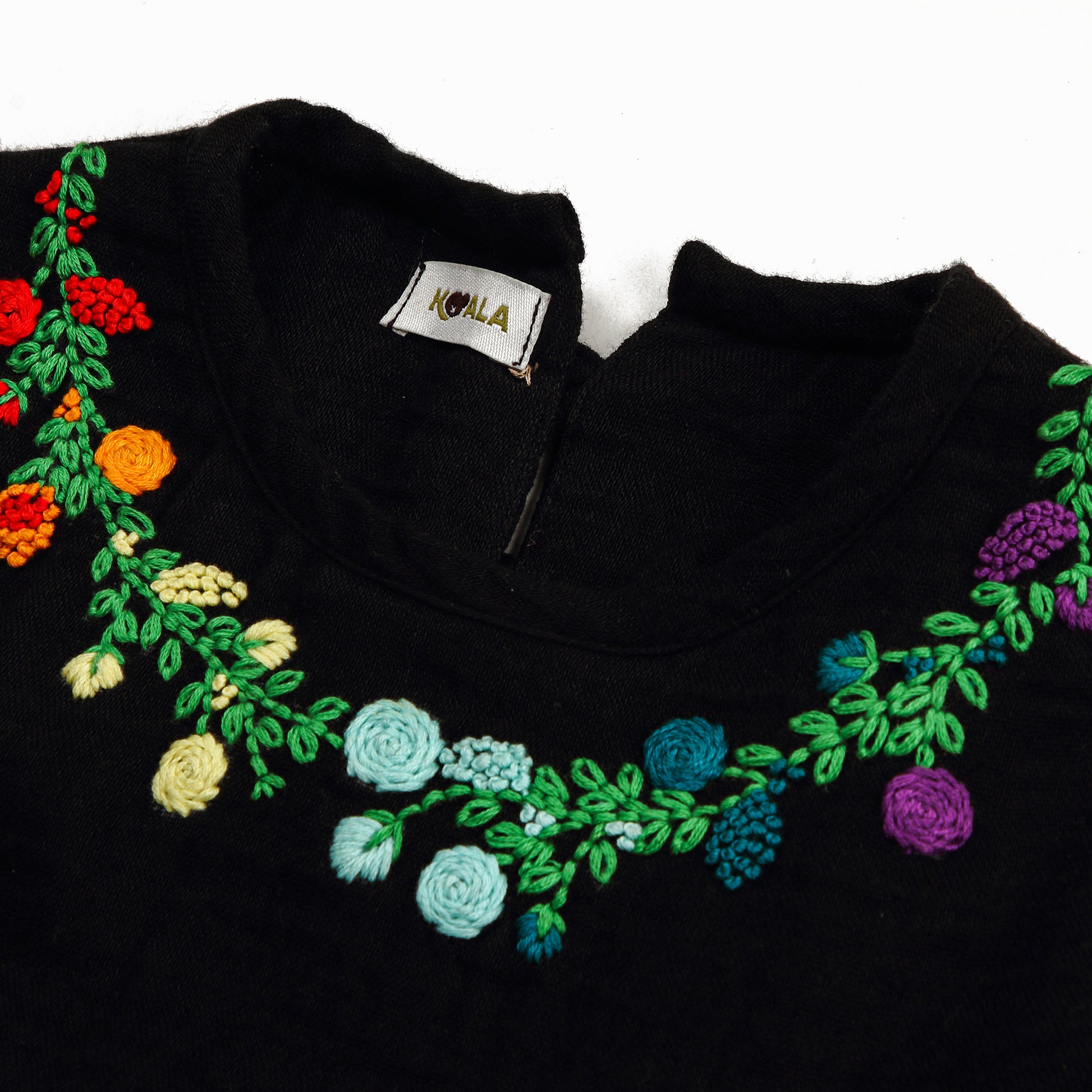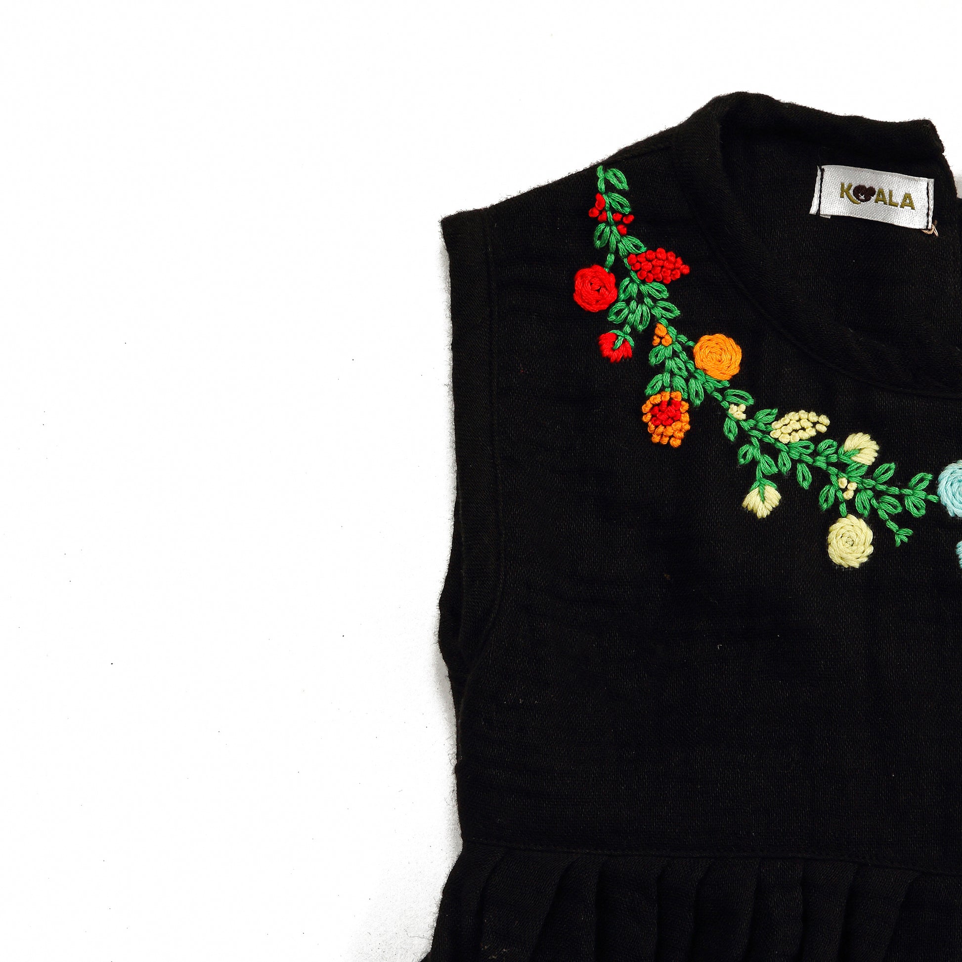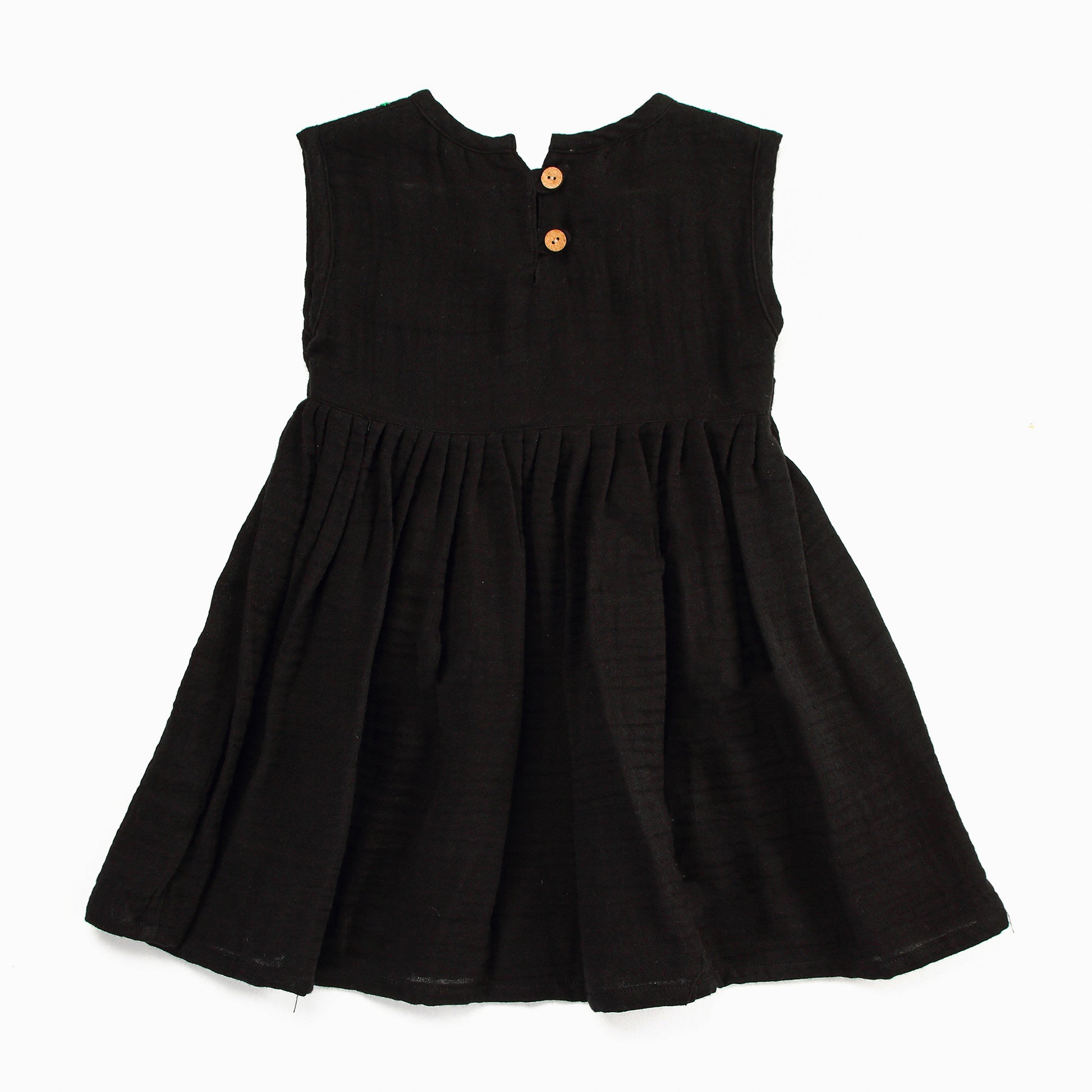 Embrace effortless elegance with our black fit and flare dress, tailored from 100% organic cotton for a breathable, eco-friendly feel. The sleeveless round neckline is beautifully enhanced with delicate hand embroidery, offering a timeless and sophisticated look for any occasion.