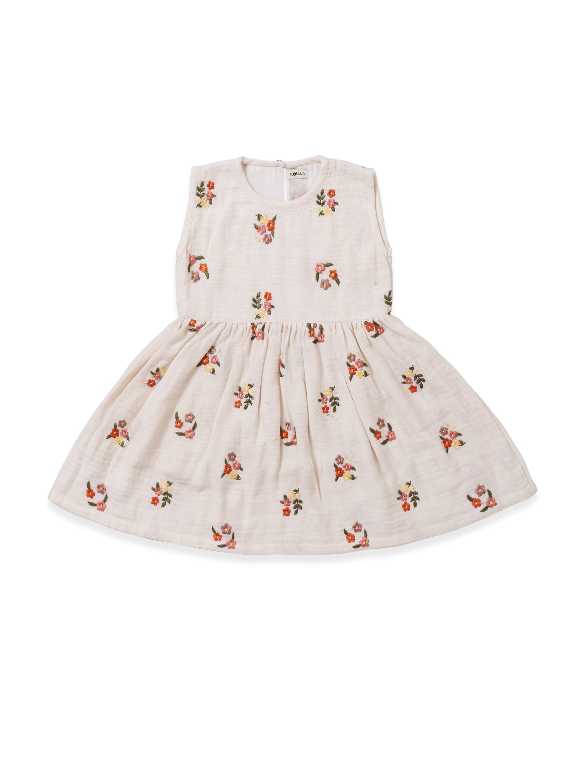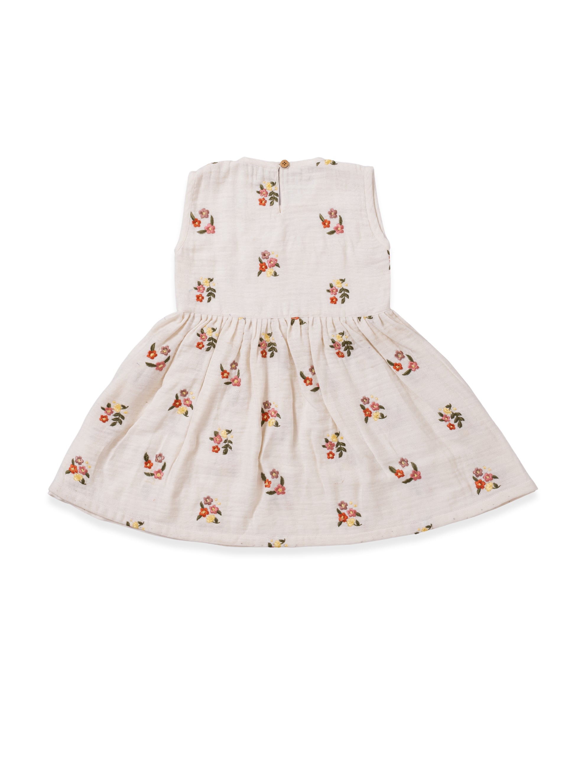 Crafted from premium organic cotton, The Blossom Whisper Dress features intricate floral embroidery all over. With its soft texture, elegant silhouette, and timeless charm, it brings together comfort, grace, and the artistry of hand-detailed design.