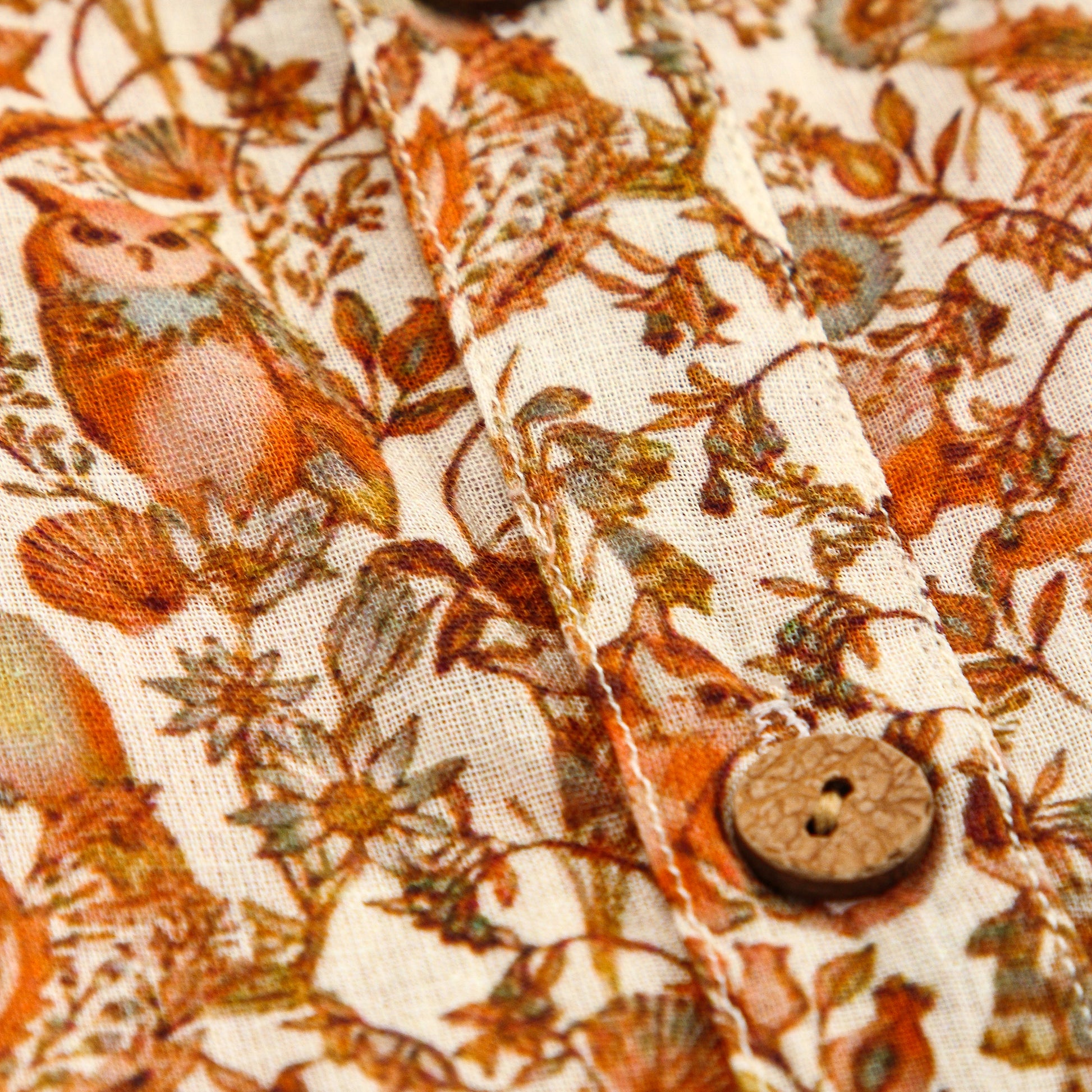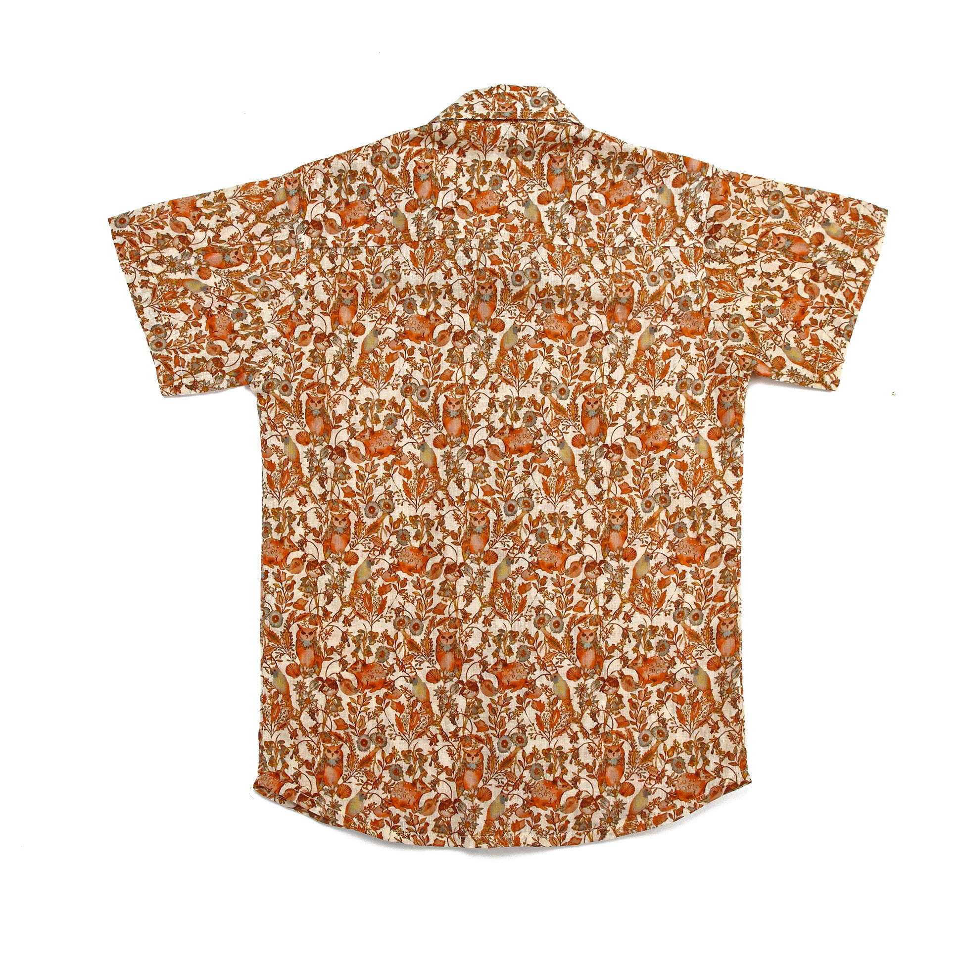 Crafted from premium 60-count mulmul cotton, this half-sleeve shirt features an earthy abstract jungle print and wooden buttons. Soft, breathable, and stylish—perfect for everyday wear, festive outings, or family get-togethers.