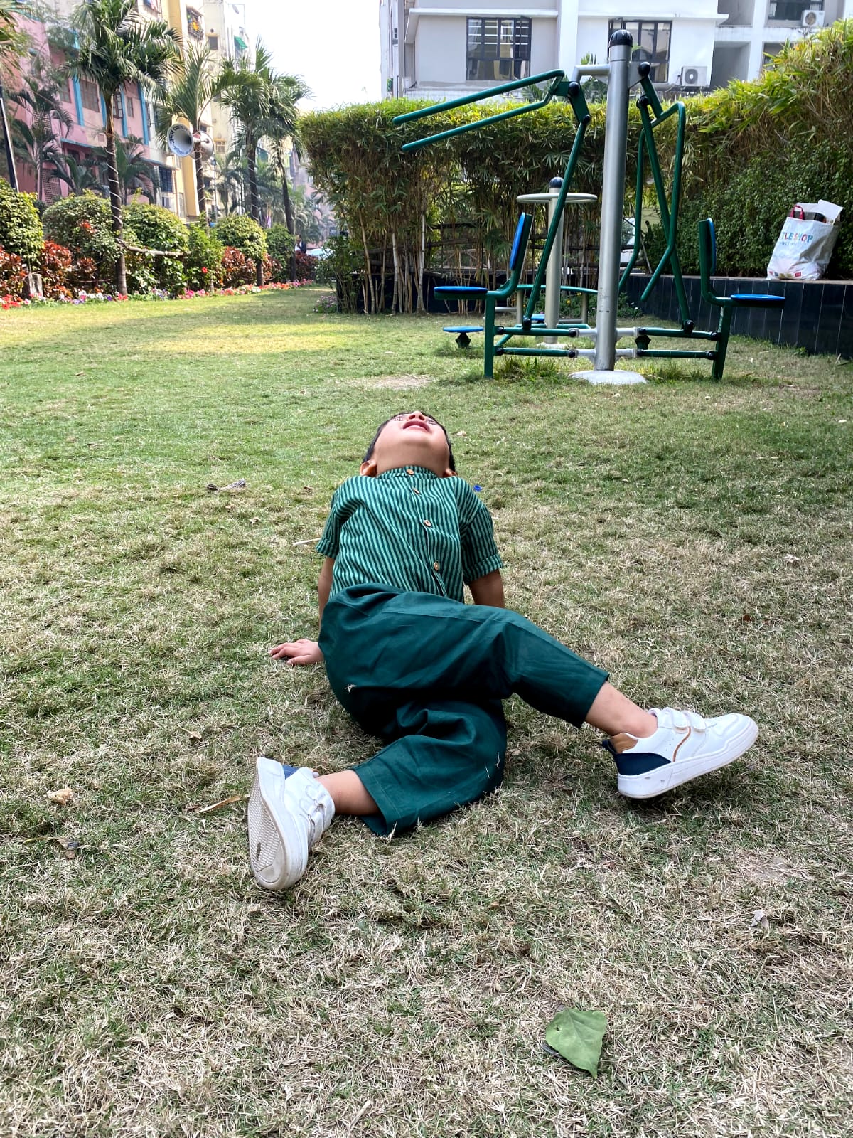 This premium 100% organic cotton kids-wear set blends style and comfort seamlessly. Featuring a charming olive striped shirt with elegant wooden buttons, it’s paired with solid olive pants that have an elastic waistband for a perfect fit. No zippers, just effortless ease!