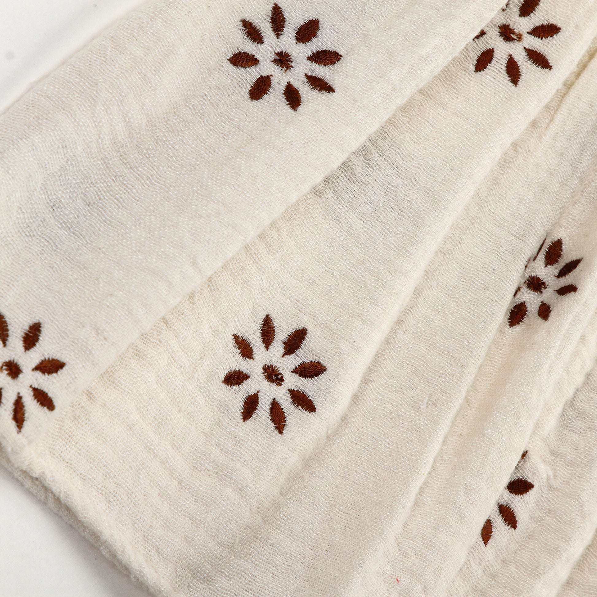 Crafted from soft cotton, this off-white embroidered Fit & Flare dress features a round neckline, three-quarter sleeves, and delicate fringed detailing. The knee-length curved hem and button closure add charm and comfort — perfect for everyday elegance.