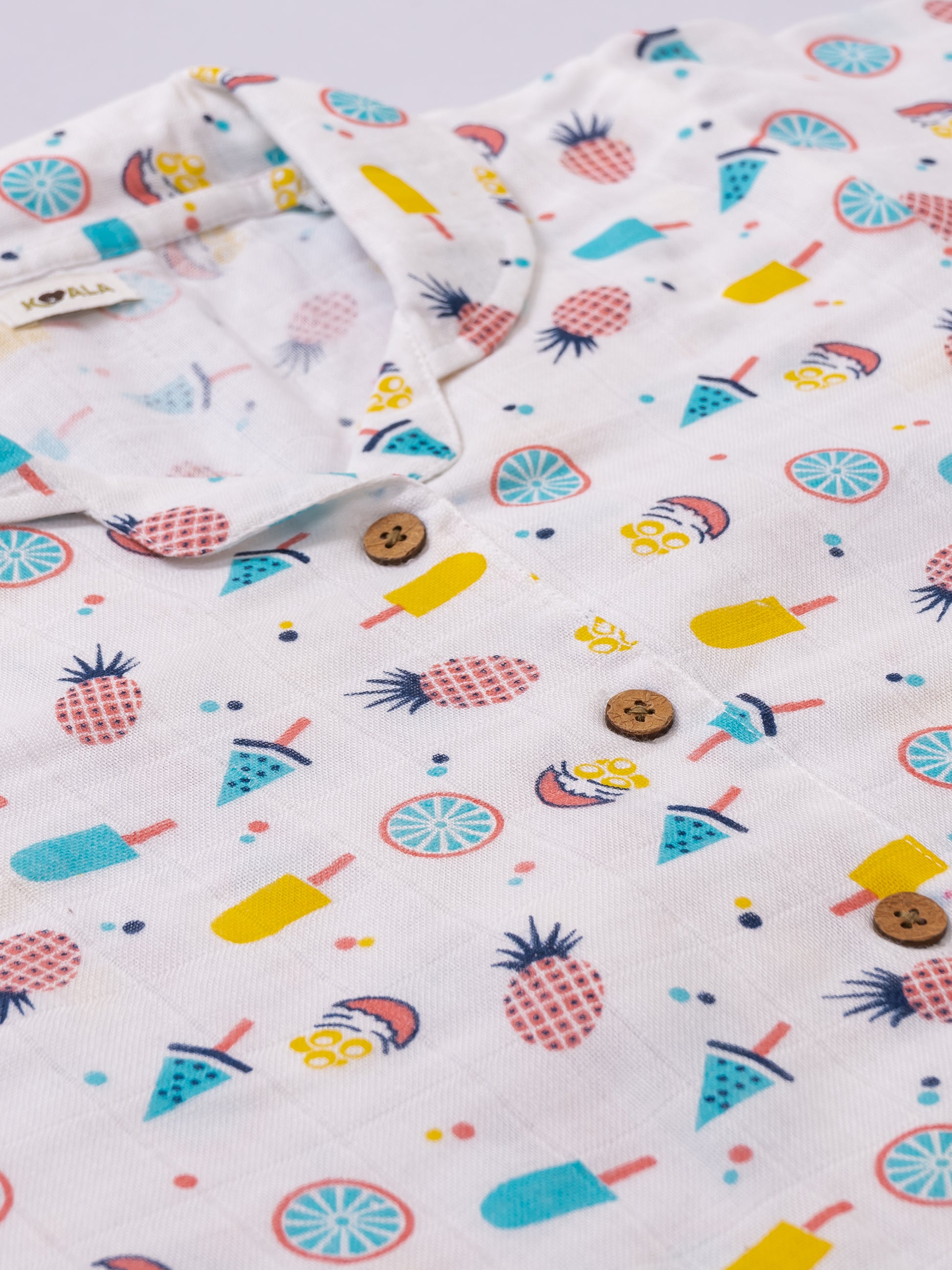 Koala Kidz Muslin Cotton Nightsuit – Ice Cream & Lollipop Print